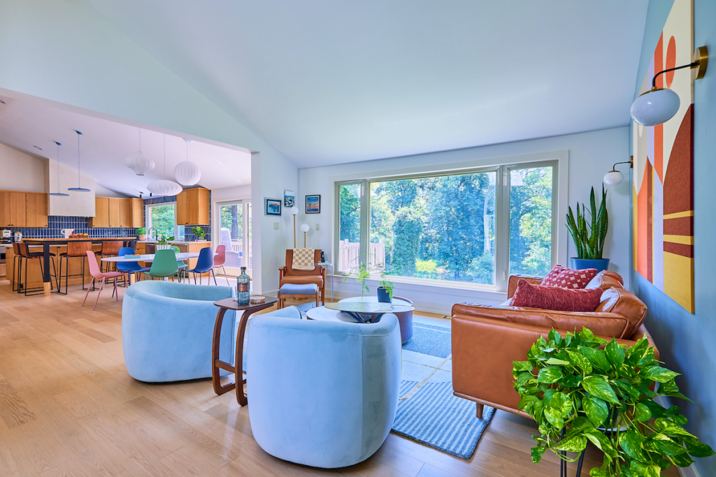 Daniel and Julie found a 1950 rancher with low ceilings and disjointed rooms, but have two active girls, need a private wing for Julie’s parents, and plan to host large, frequent gatherings. Committed to giving this multigenerational family the dream life they deserve, we carved out 200% more usable space, and raised ceilings 150% higher. Seeing the dramatic transformation, people were knocking on the door with offers mid-construction!