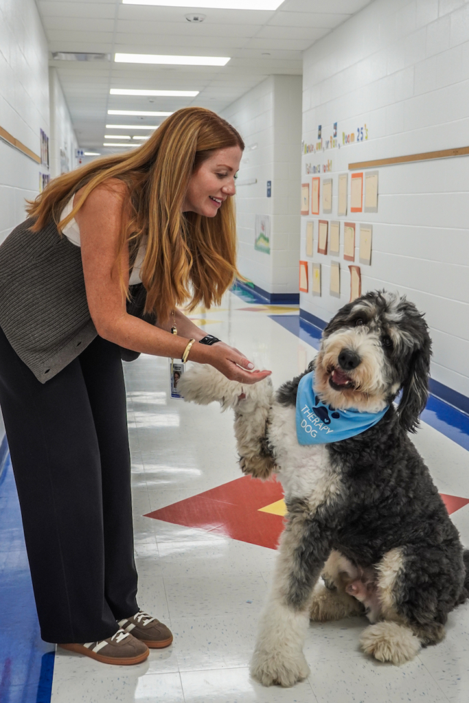 “… We had envisioned starting a therapy dog program as a way to support students’ social-emotional health,” Principal Daria Salay recalled. “Students and staff got a taste of the benefits of pet therapy and considered the next steps.