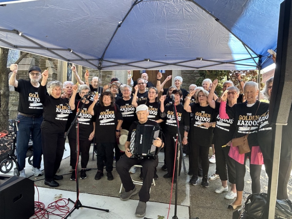 The Mabel Kay Senior Center’s Golden Kazoo Band for the first time played its kazoos for a broader audience outside of those who regularly attend the group’s performances or work with the center.