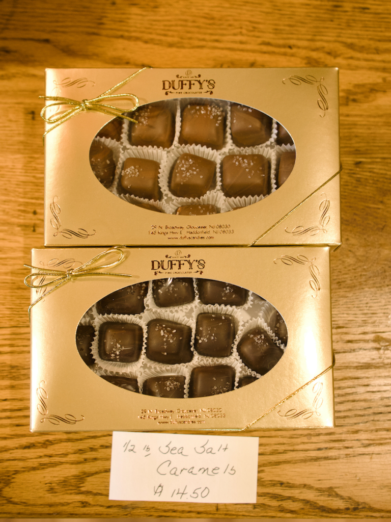 Now, don’t get me wrong. I’m just as intrigued by the treasures that I can find in the Quaker community as much as the next person, but I’m also a sucker for sweets and treats. Take for example Duffy’s Fine Chocolates. It’s a little further downtown but still within walking distance. Like Home on Haddon, I found another window display that had remnants of fall lingering when I gazed upon the orange pumpkins, but it was all too welcoming. Charles J. Duffy and his wife Elizabeth started Duffy’s Delicious Candies from their home in Gloucester City in 1922. It’s a confectionary that’s been passed down through five generations, and the candy – everything from the signature chocolates to the caramels, the confections, the candy apples, the assortments and more – is consistently handcrafted in small batches to ensure the finest quality. But suppose you know someone who likes their sweets with their treats and you want to surprise them? Well, you’re in luck because on the shop’s website lies Byers’ Choice figurines, dolls that would do just the trick. Be sure to follow Duffy’s Fine Chocolates on Facebook and Instagram for live updates and make sure not to miss this spot when you’re in town.