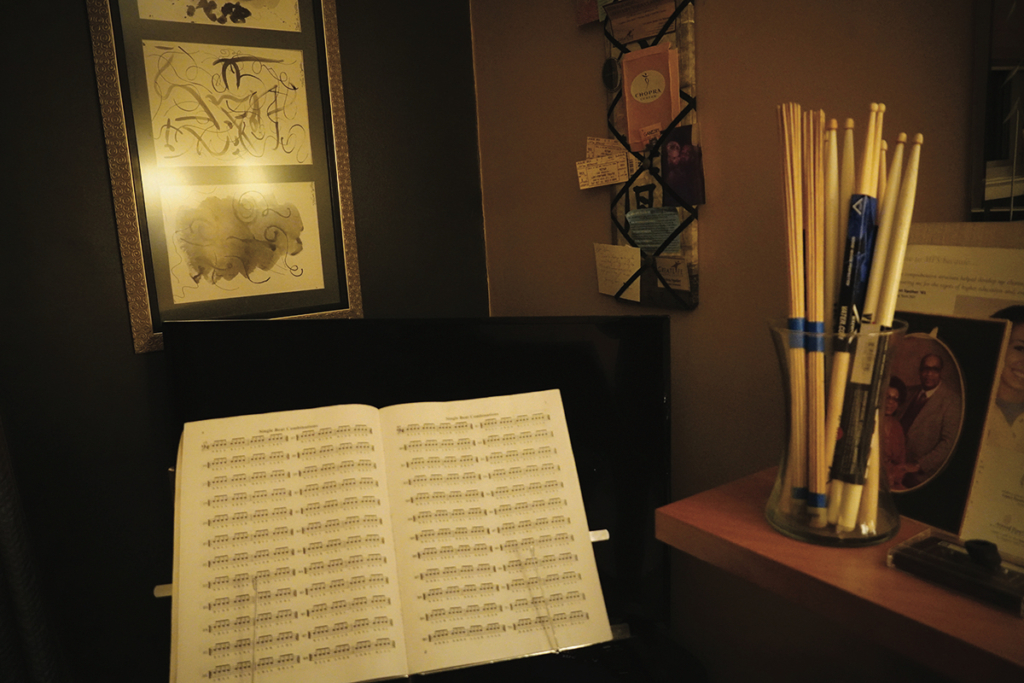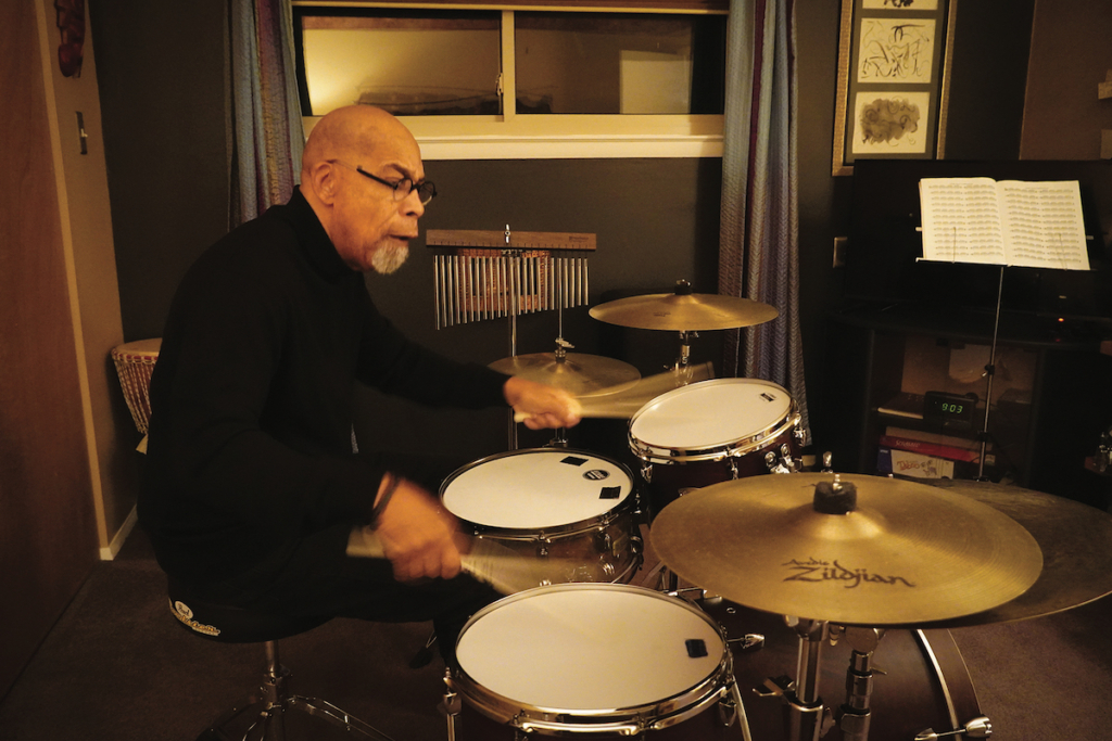 Speller’s currently putting a new drum set together and to get the vibe going, he decides to play a track that features the late Jack DeJohnette, a jazz pianist and drummer known for his distinctive style, one of Speller’s influences. Speller had just found out of DeJohnette’s passing.