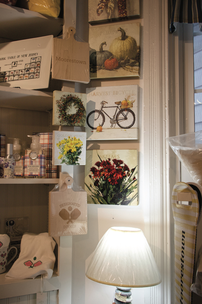 Moorestown natives Julie and Pete Bender, co-owners of Moorestown Hardware on Mill Street, didn’t close the store’s doors during the pandemic. That community support and dedication earned them the co-Citizens of the Year award for 2021. Housed in a rustic former lumberyard that dates from 1879, their business isn’t your typical hardware store but one that fits all – automotive, gifts, beauty products, kid’s toys, farm and ranch, bath, building supplies and materials and more. This place has served Moorestown for more than 100 years and with their extensive holiday decorating selection (imagine the festive lights, the tall and small trees, the mystical snow globes), all the décor is right at your fingertips. Navy Blue Home and Gifts on Main Street features the work of several artists. Designer Natalie Pope offers travel, shopping and beach totes in a Nantucket fabric of her own design, while artist Carol Nash offers custom ceramics and paintings in watercolors and oils. Mary Jane Montemuro, former president of the Moorestown Garden Club, designs custom-slip covers, painted furniture, glitter houses and floral design. Carol McLaughlin’s custom-knit sweaters for infants, children and adults feature fun stripes and graphics. Melissa McGrath, owner of Navy Blue, opened her business in 2012 with a few goals in mind – to support the mission of the “Made in the USA” brand, bring items of local interest to Moorestown and surrounding communities and to give friends a place to showcase their talent. Navy Blue was born when the youngest of McGrath’s four children left for college. She had notebooks and magazine pages full of ideas and energy to spare, thus turning that into something tangible. Just make sure to watch out for store security. Nellie, a 10-year-old Boston Terrier, is Navy Blue’s top guard dog.