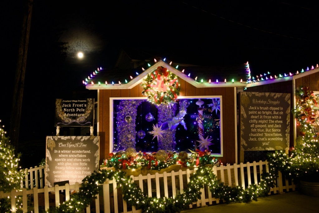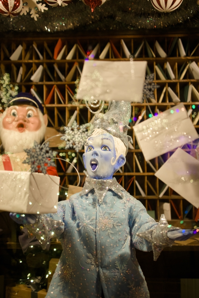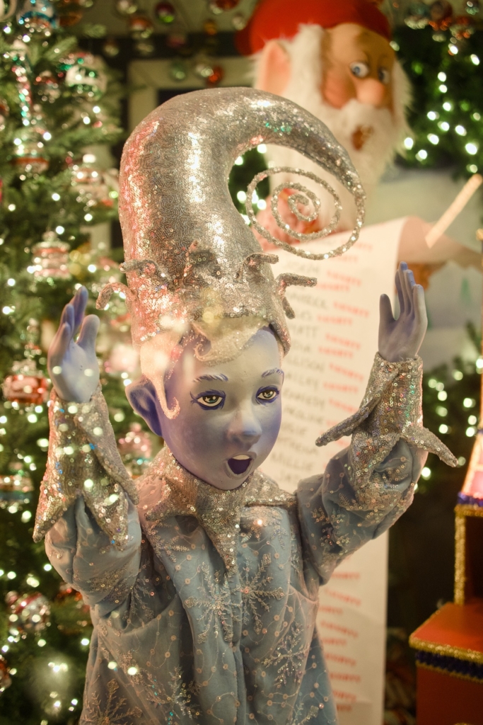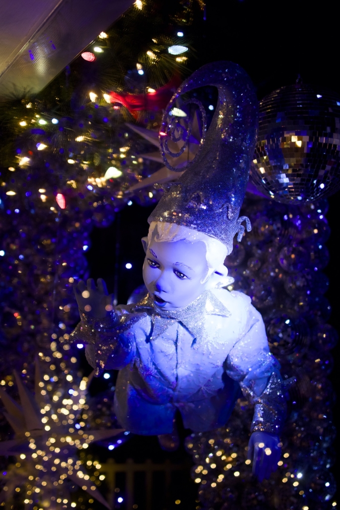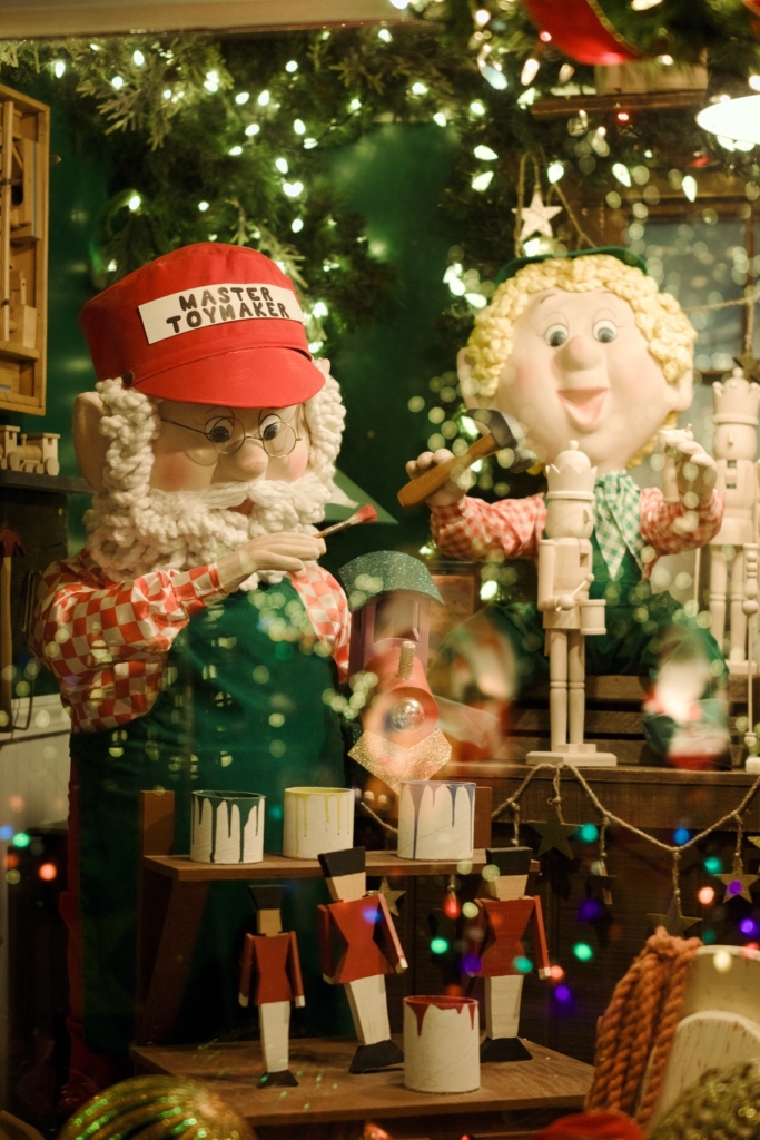 This year’s theme is Jack Frost’s North Pole Adventure. Decked out with Christmas trees, gingerbread houses, nutcrackers, vintage blowmolds decorations (McCarty estimates they own at least 600), hand-painted backdrops and lights galore, the display — which also features a nativity scene and train sets running through miniature towns — is lit up from 5 to 10pm each night. Window-display vignettes show animatronic elves, Santa’s helpers in bakers’ hats mixing batter and decorating Christmas cookies, and Santa’s workshop abuzz with gift-wrapping letter-mailing activity. It’s free, but for the cheer they bring in delighting adults and kids alike, donations are accepted.