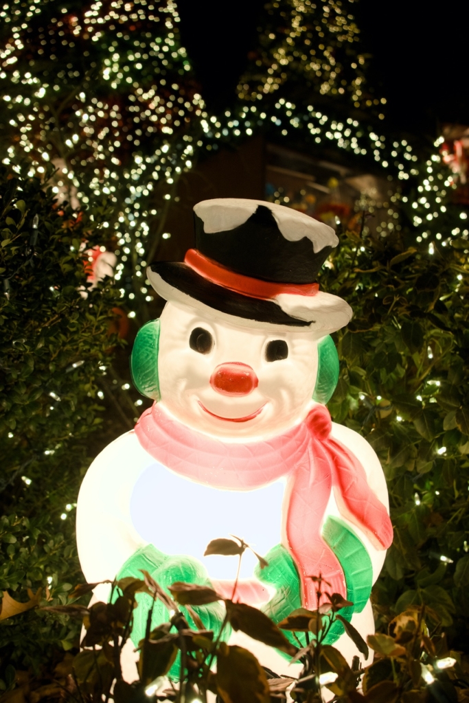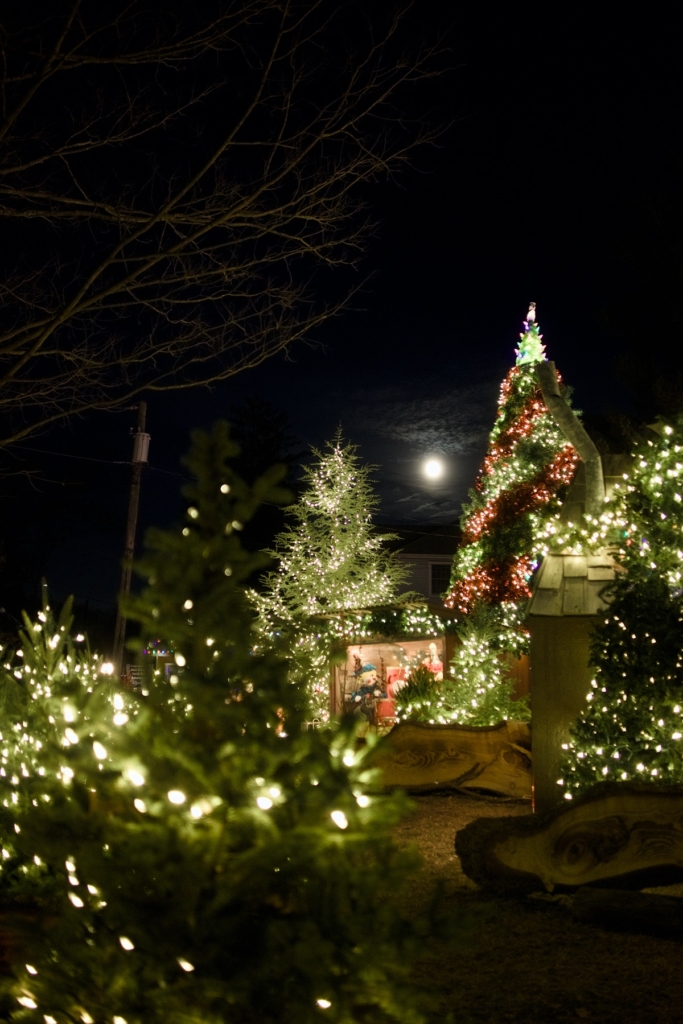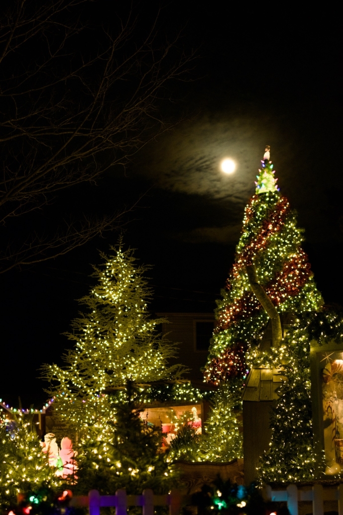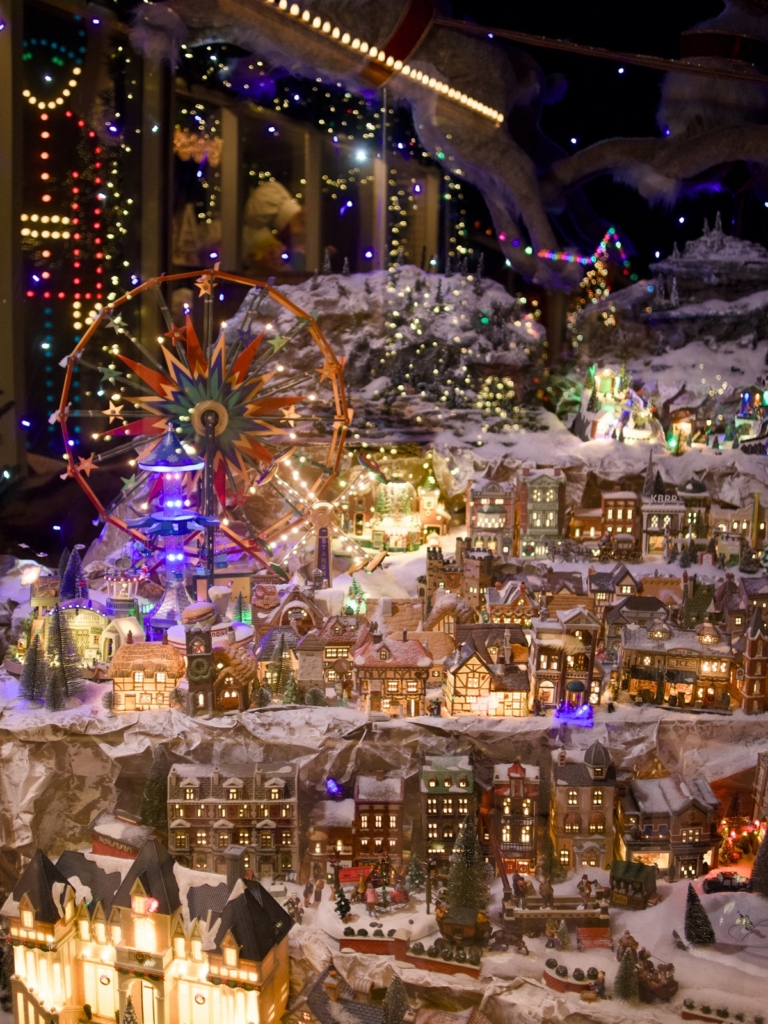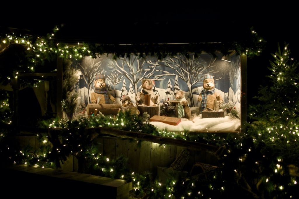 This year’s theme is Jack Frost’s North Pole Adventure. Decked out with Christmas trees, gingerbread houses, nutcrackers, vintage blowmolds decorations (McCarty estimates they own at least 600), hand-painted backdrops and lights galore, the display — which also features a nativity scene and train sets running through miniature towns — is lit up from 5 to 10pm each night. Window-display vignettes show animatronic elves, Santa’s helpers in bakers’ hats mixing batter and decorating Christmas cookies, and Santa’s workshop abuzz with gift-wrapping letter-mailing activity. It’s free, but for the cheer they bring in delighting adults and kids alike, donations are accepted.