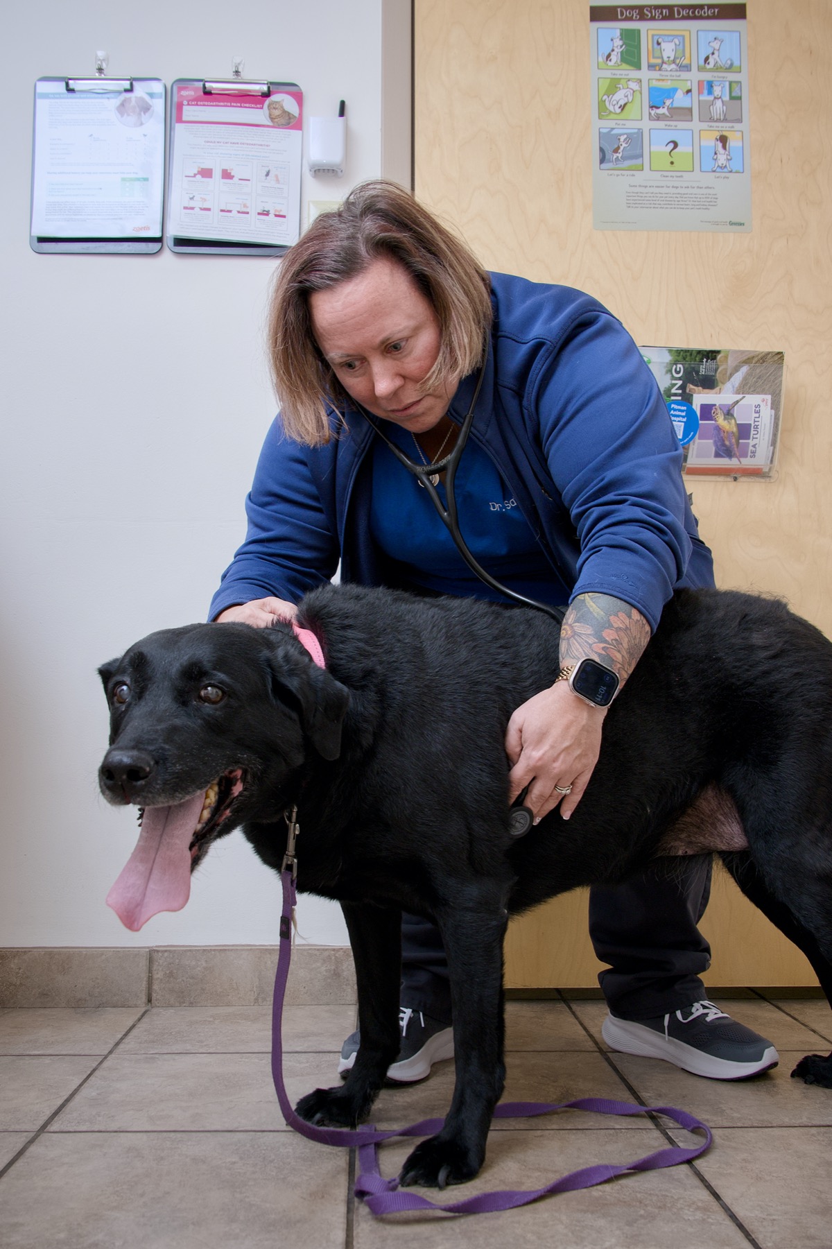 Those efforts can become personal. Dr. Olsen’s own dog, Zoey, a pit bull, is a shelter rescue. And longtime client Theresa Hunt can attest to how life-changing the hospital’s shelter partnership can be.