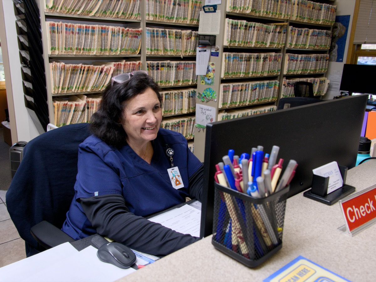 “I liked the small-town feel of the animal hospital and was attracted to the idea of working with multiple vets who could work as a team and bounce ideas off of each other, as well as share expertise about different specialties,” says Dr. Olsen. “The place just had a warm, homey feel to it.”