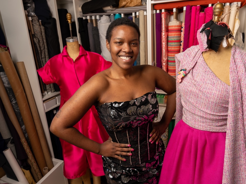 One surprise that has connected Kelly to the craft of fashion has been generational hobbies and skills that have apparently gotten passed down. “I told my dad that we were taking this seriously, and then one day he randomly texted me that my grandmother sews and made all her going-out clothes in New York City, and that my great-grandmother worked in a sewing factory,” Kelly shared.