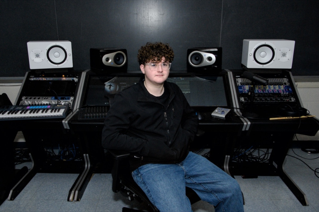 Declan started playing piano at age 5, joined the marching band in seventh grade on mallet percussion, and has done theater and choir. He started producing his own music a few months before his freshman year, and thought the audio production program “sounded fun.”