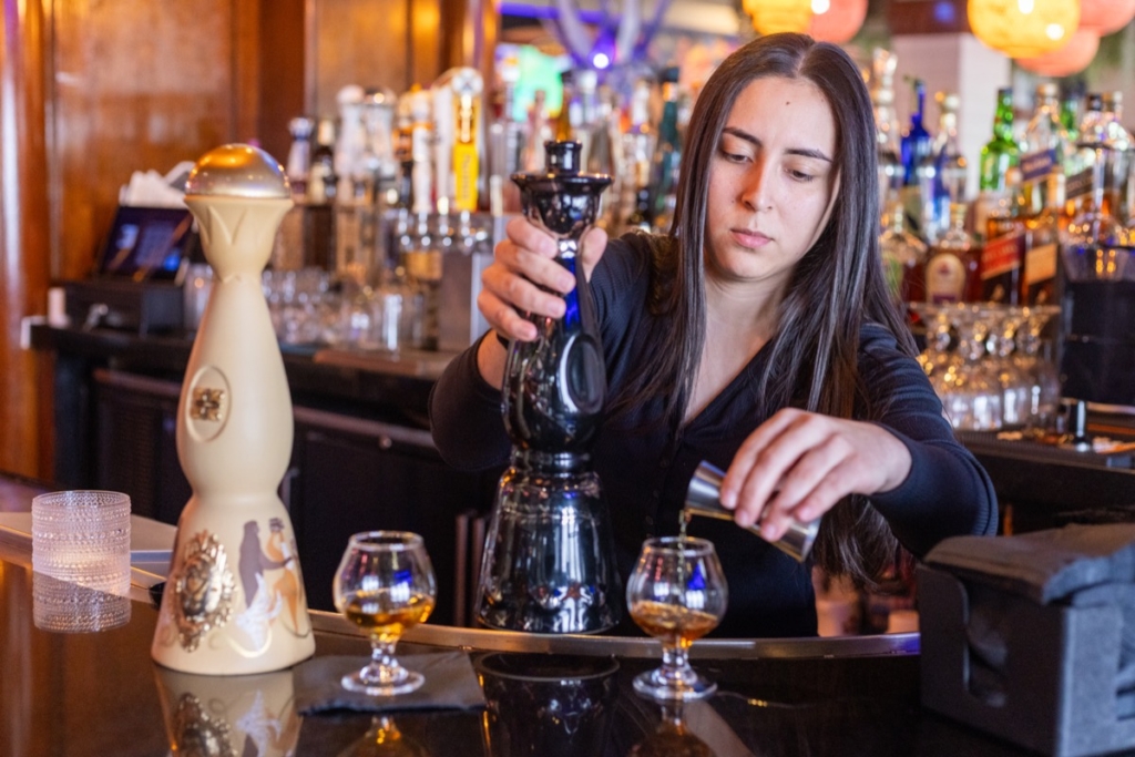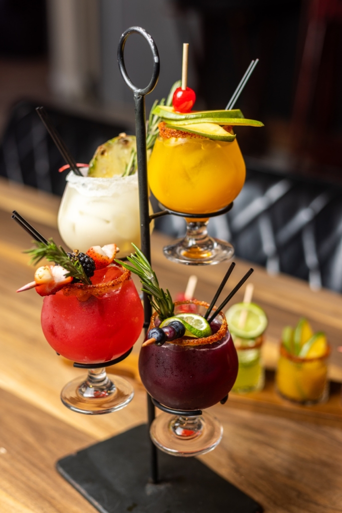 Happy hour is from 3 to 5 p.m. Monday to Thursday. But any day of the week, you can choose from a full line of flavorful, colorful margaritas — 19 in total, which you can sample as a margarita flight as well; you can also request mezcal as an ingredient instead of tequila. “Los Picantes” are a handful of spicy drinks, infusing flavors like jalapeno, habanero, and chipotle into the margaritas.