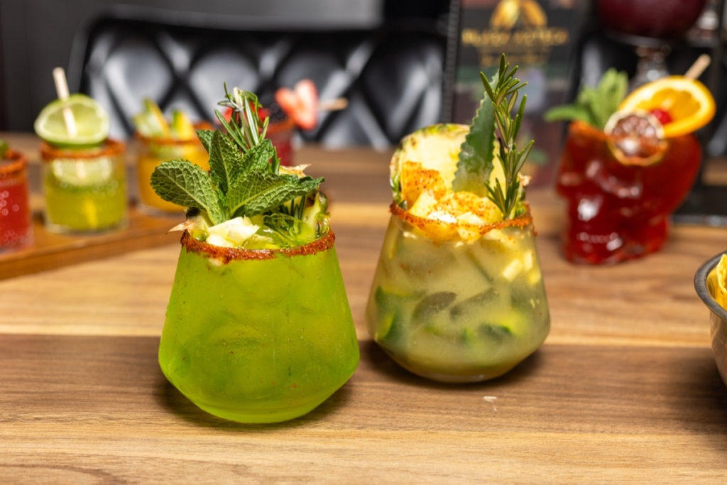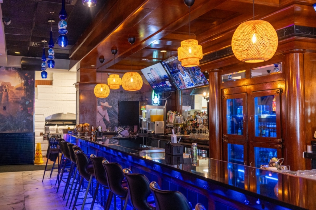 Handcrafted cocktails include a Mexican old fashioned, classic mojito, Bahama Mamasita, and the Trash Can: a mix of rum, gin, vodka, tequila, triple sec and other flavors. Also on the extensive drink menu are daiquiris, Azteca Sour varieties, martinis, micheladas, wine, beer, tequila (also served as flights) and other spirits.